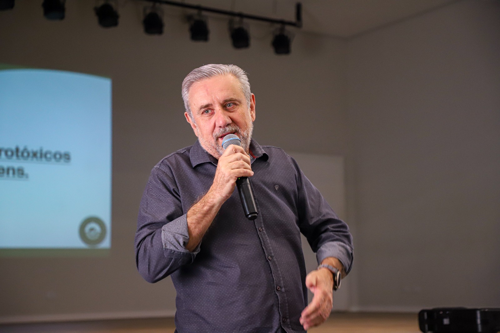 O engenheiro agrônomo e de segurança do trabalho Raphael Lúcio Garcia da Silva falou sobre a “Gestão Segura de Agrotóxicos e suas Embalagens”, explicando os riscos do uso inadequado e a importância da destinação correta das embalagens vazias.