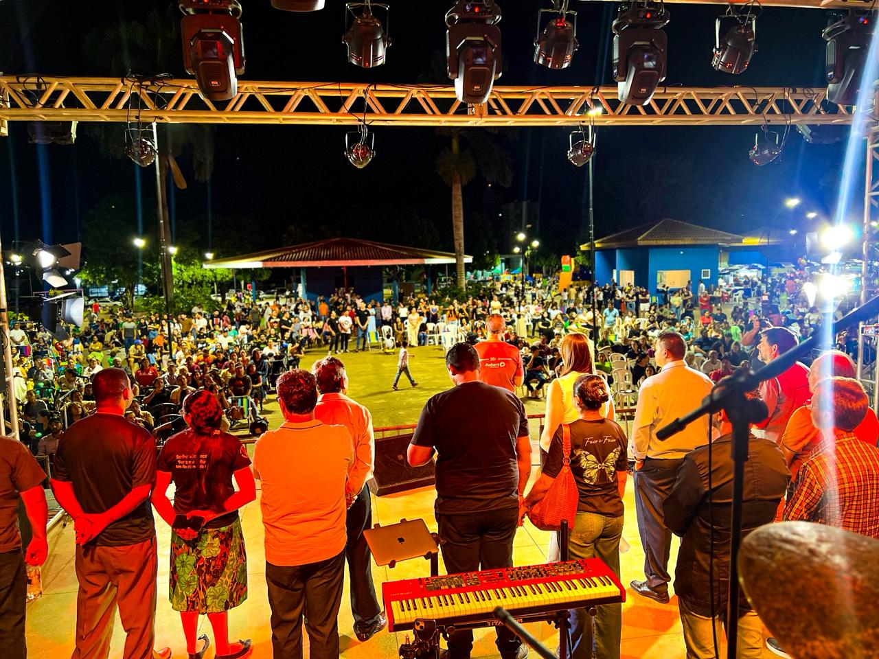 Evento reuniu milhares de fiéis na Praça Central e contou com a presença do cantor Theo Rubia, em uma noite marcada por união, oração e celebração