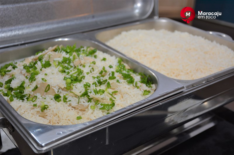 O cardápio inclui o arroz comum e arros com guariroba, além de farofa, repolho agridoce, vinagrete, mandioca, churrasco e Linguiça de Maracaju - Foto: Gessica Souza